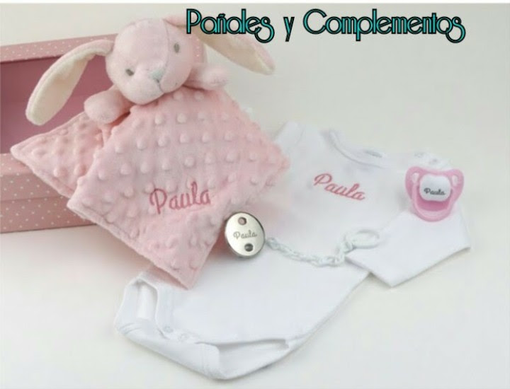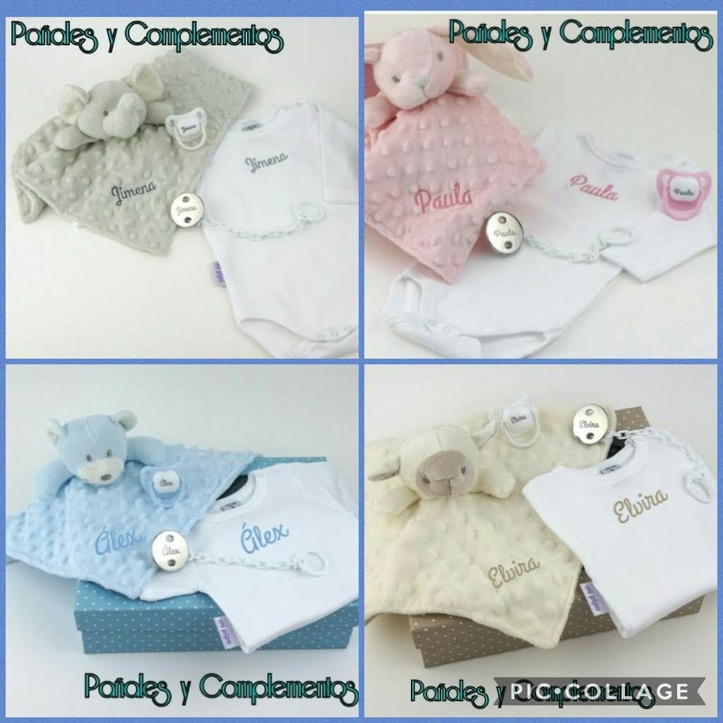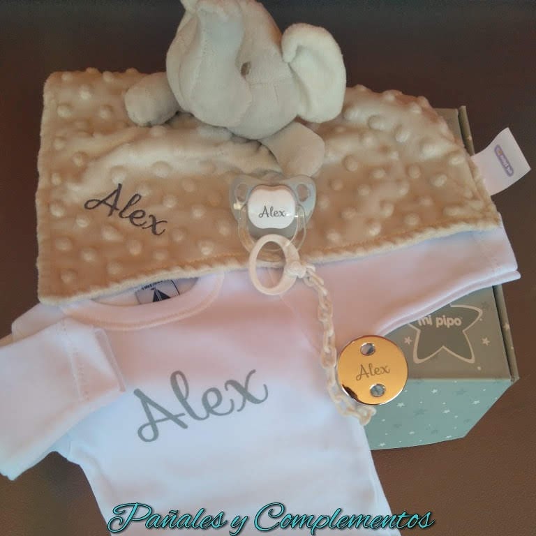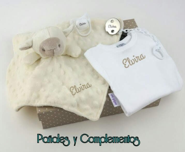 Vaja regalo compuesta por dou.dou, chupete recien nacidp, body y chupetero plateado
